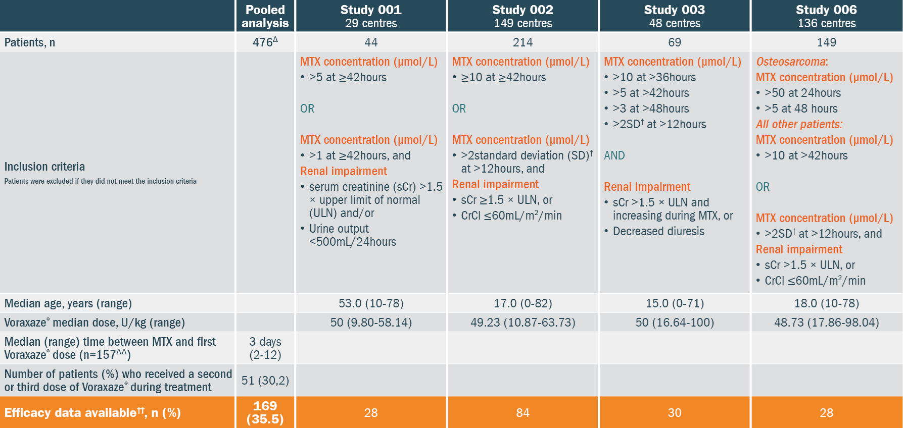 †† Patients with at least 1 post-Voraxaze® MTX concentration measured by high-performnance liguid chromatography (HPLC)