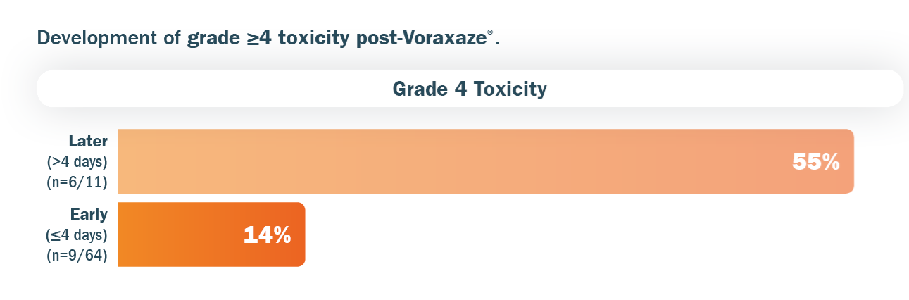 Development of grade ≥4 toxicity after Voraxaze® administration.
