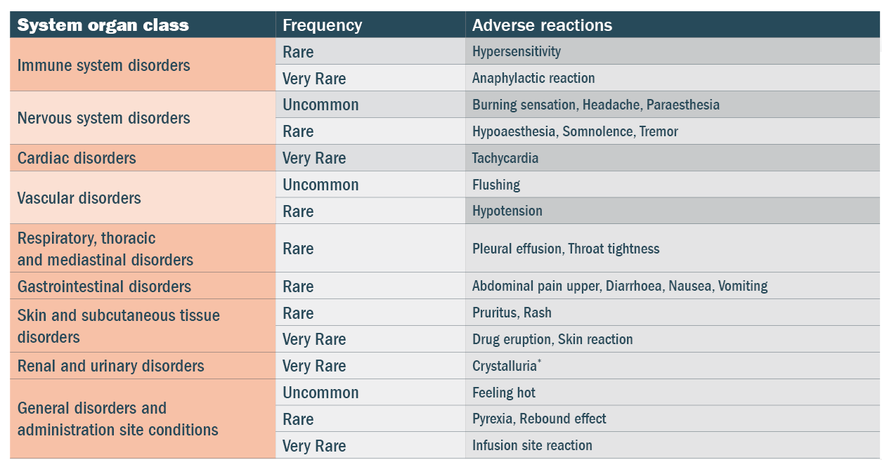 The most frequent related adverse reactions were burning sensation (<1%), headache (<1%), paraesthesia (2%), flushing (2%), feeling hot (<1%).
