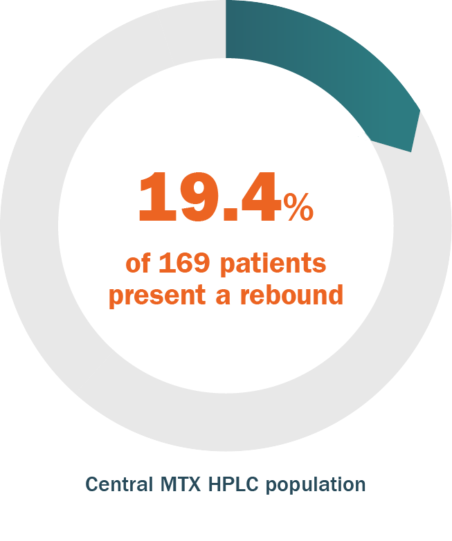 Rebound effect is defined as a MTX concentration increase of at least 1 μmol/L and at least two times the post-Voraxaze® nadir.